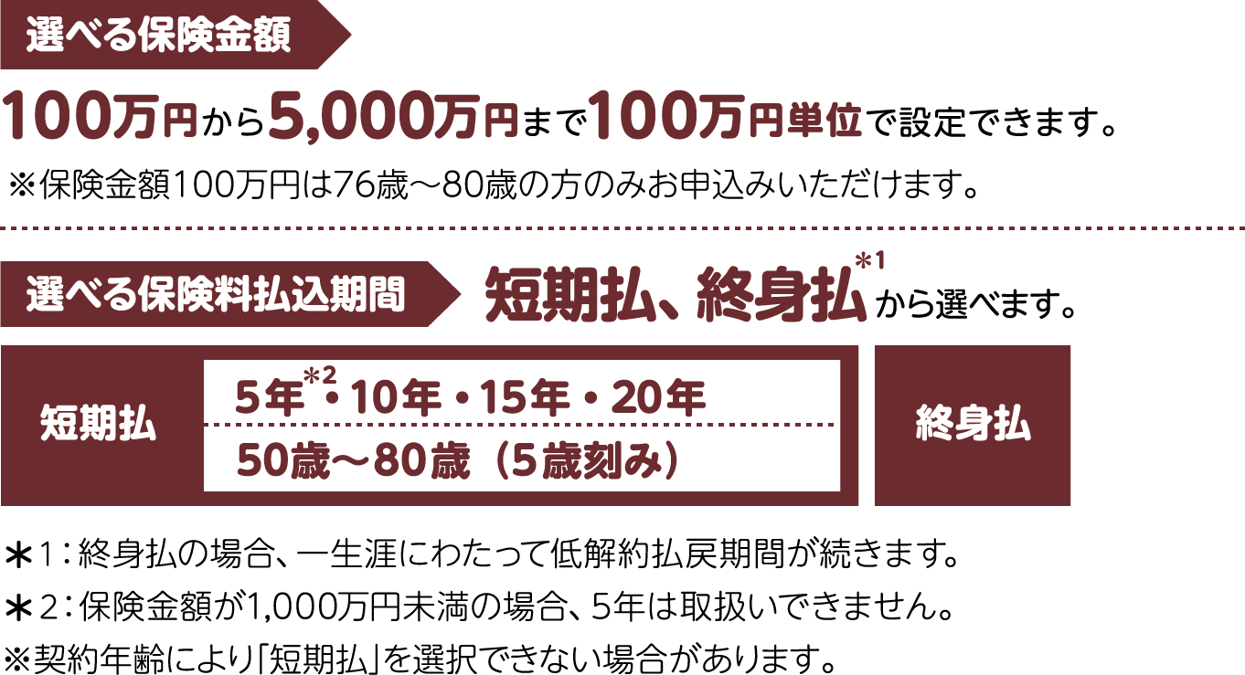 保険金額や保険料払込期間をニーズに合わせて選べます。