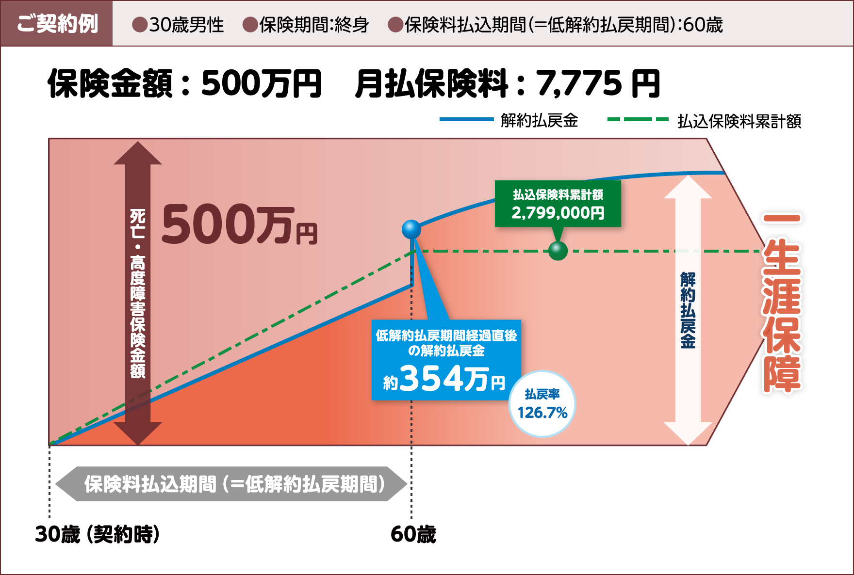 - ※低解約払戻期間中に解約した場合の主契約の解約払戻金は、抑制されています。